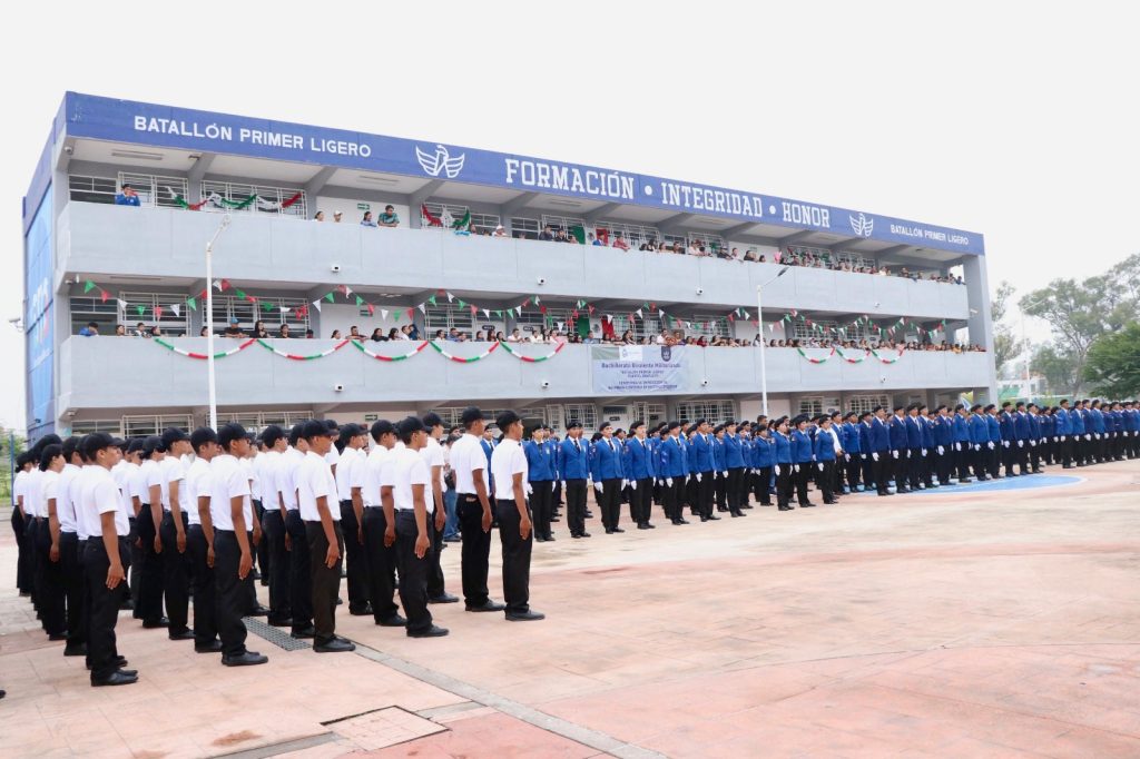 “Hoy celebramos el espíritu de superación, el esfuerzo constante y la entrega de alumnas y alumnos ascendidos del Bachillerato Bivalente Militarizado. La insignia que hoy reciben simboliza largas horas de estudio y de retos superados. Es un logro que han ganado con disciplina y mérito, pero también es de quienes han estado a su lado todos los días, sus maestros, sus compañeros y principalmente sus familias” destacó.