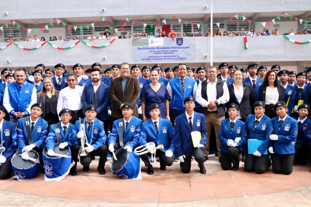 El evento fue encabezado por la alcaldesa Lorena Alfaro García, autoridades educativas estatales, funcionarios municipales, así como de madres y padres de familia, quienes, junto a los cadetes, celebraron este importante logro.