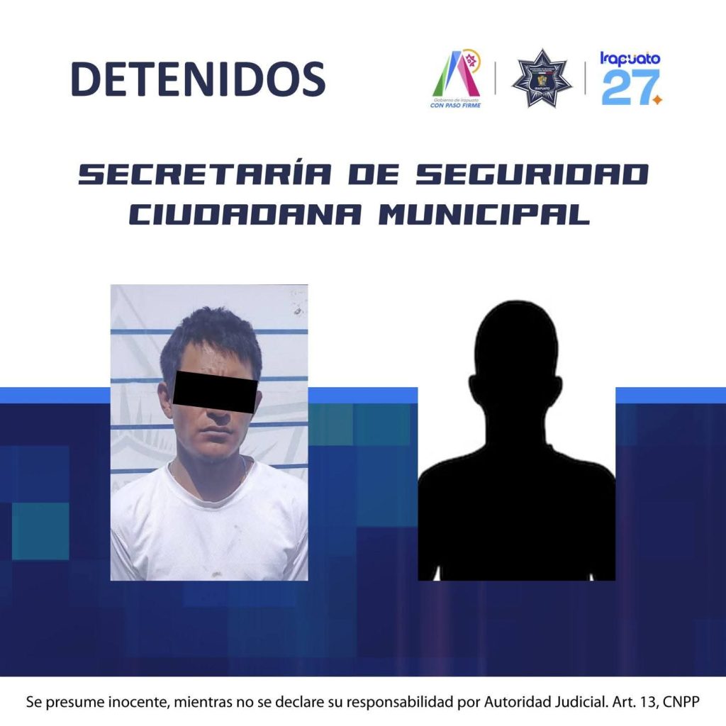 SECRETARÍA DE SEGURIDAD CIUDADANA DE IRAPUATO CONFIRMA LA DETENCIÓN DE DOS PRESUNTOS RESPONSABLES DE HOMICIDIO